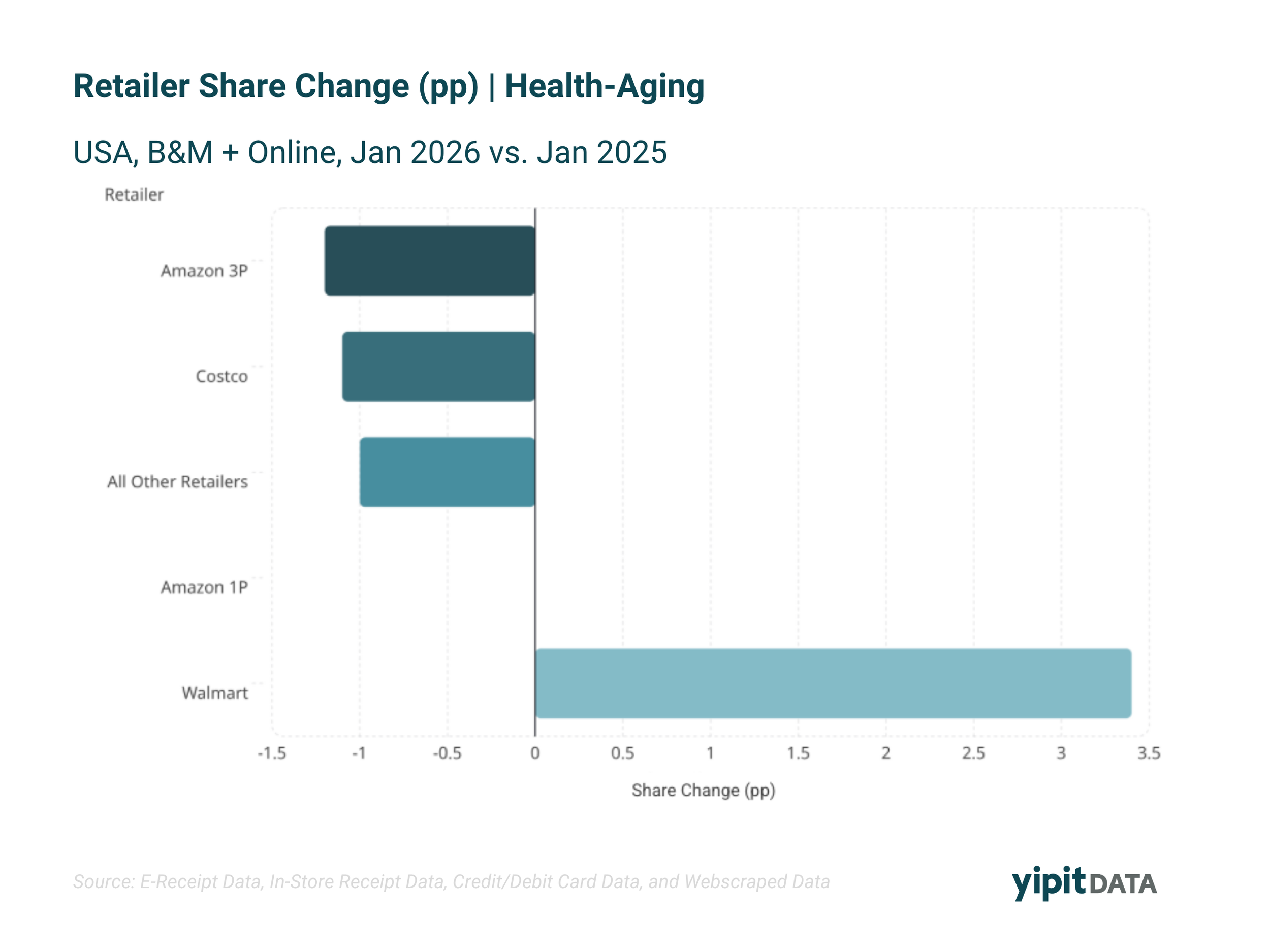 This highlights how retailer performance varies across different supplement categories, with Walmart strengthening its position in healthy-aging products.