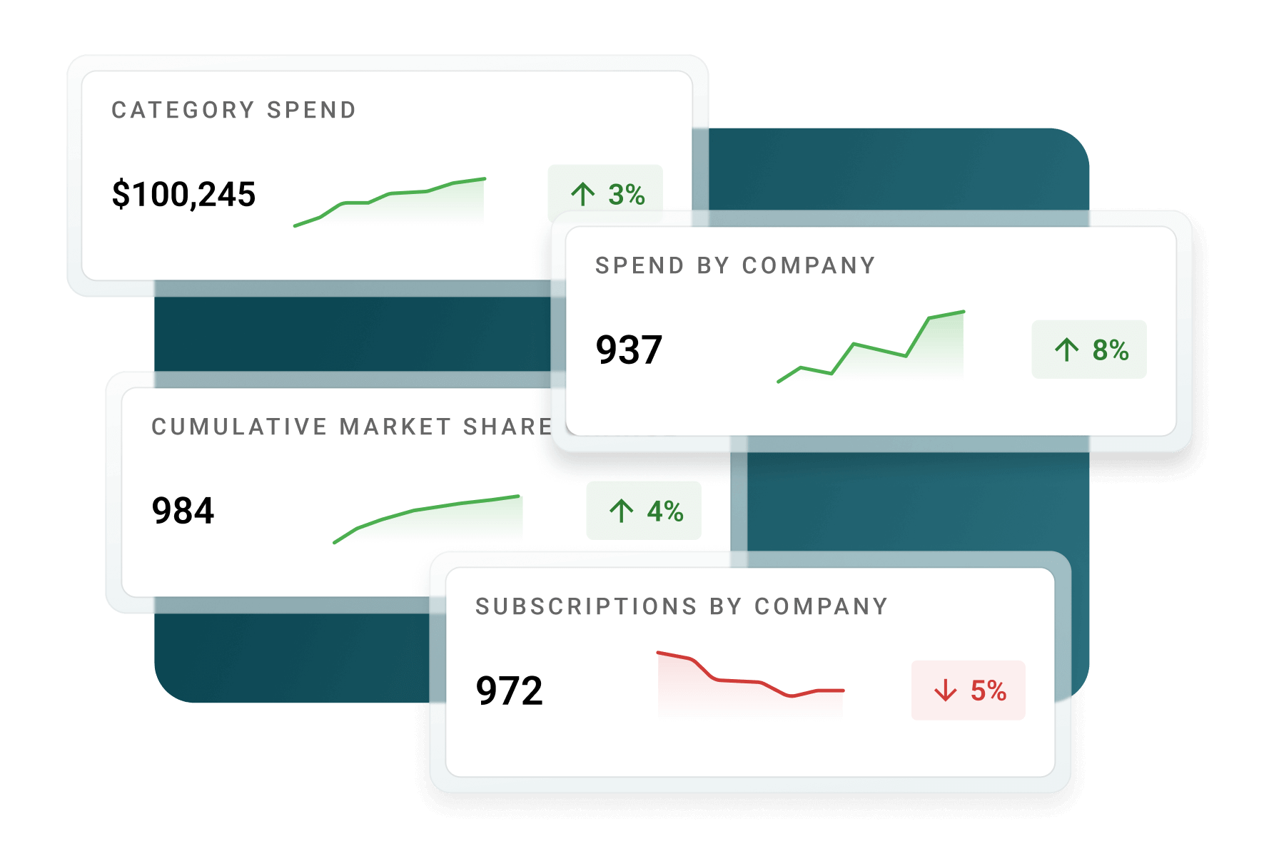 Access B2B spend data that is rapidly expanding on private companies and competitors—compare market share, retention rates, and customer movement to invest with confidence.